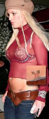 Britney spears has a small tattoo on her right hip of a chinese symbol.